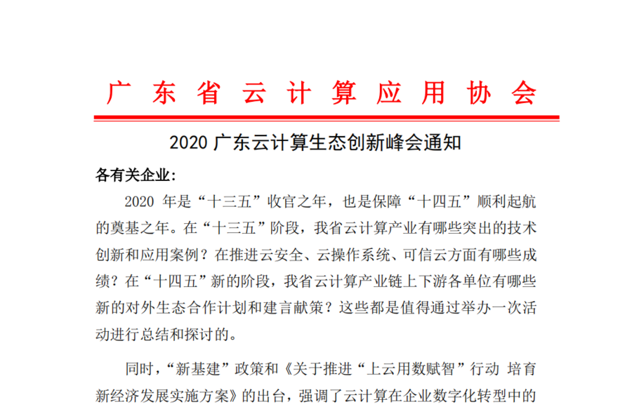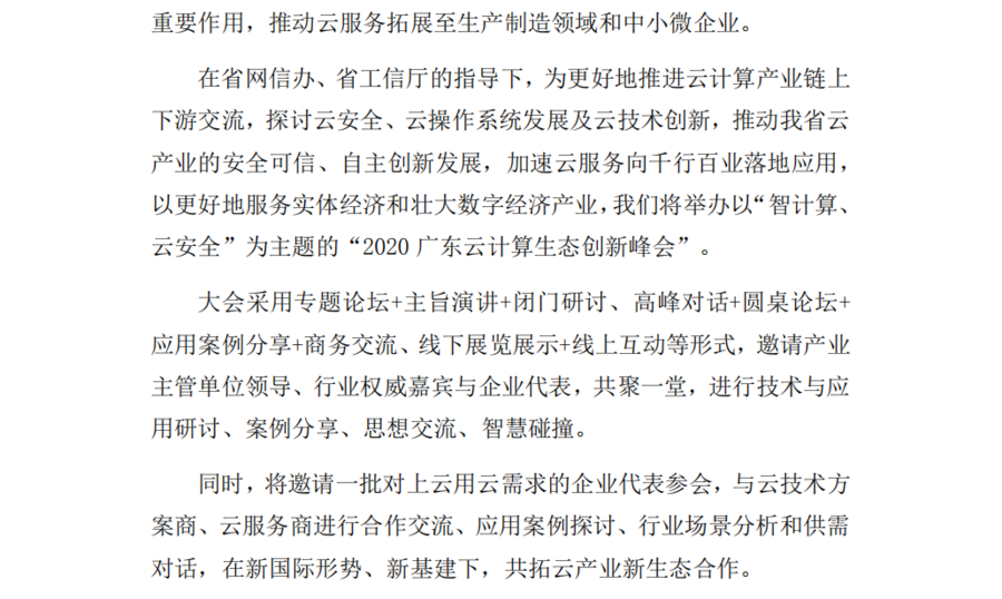 2020广东云计算生态创新峰会通知