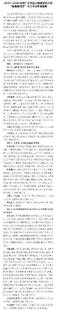 2019~2020 年度广东省重点领域研发计划 “新能源汽车”重大专项申报指南