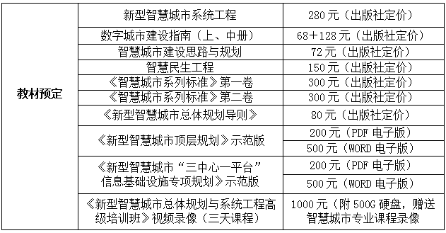 授课教材以李林教授编著的《新型智慧城市系统工程》为主教材,以《数字城市建设指南》上、中册、《智慧城市建设思路与规划》、《智慧民生工程》、《智慧城市系列标准》第一卷、第二卷、《新型智慧城市总体规划导则》为辅助教材。