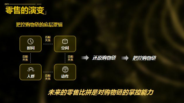 我们有一个重要的论断:未来的零售比拼是对购物链管理的掌控能力;以消费者为中心从消费动机、产品选择,产品信心、交易行为、内心评价的管理。